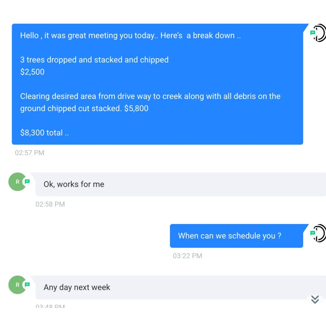 On a job site and can't answer the phone? No problem, we'll fire off a text and start the conversation for you.